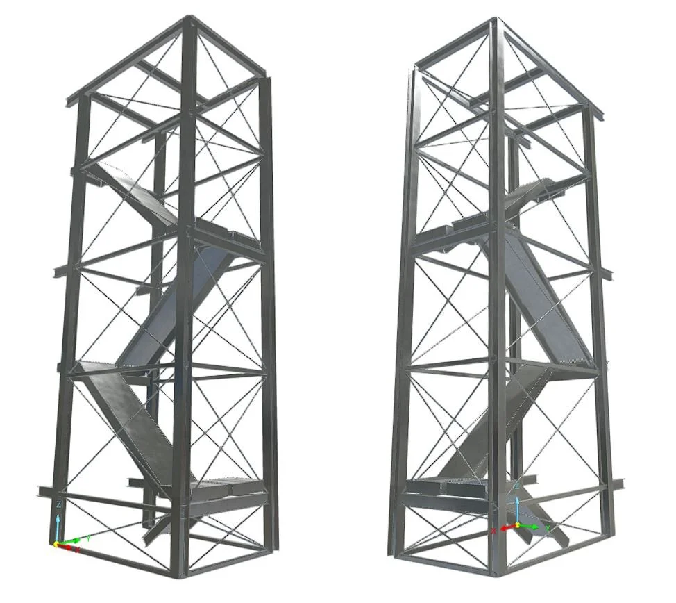 ✅ Design of steel to steel connection details for the staircase, as well as the support brackets for the rainscreen.